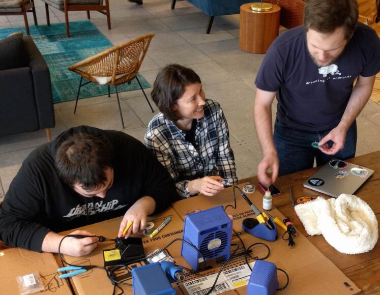 Near the end of 2015, a group of Urban Airship employees in the Portland office invited their colleagues to try their hand at soldering and assembling their very own circuit board ornament.