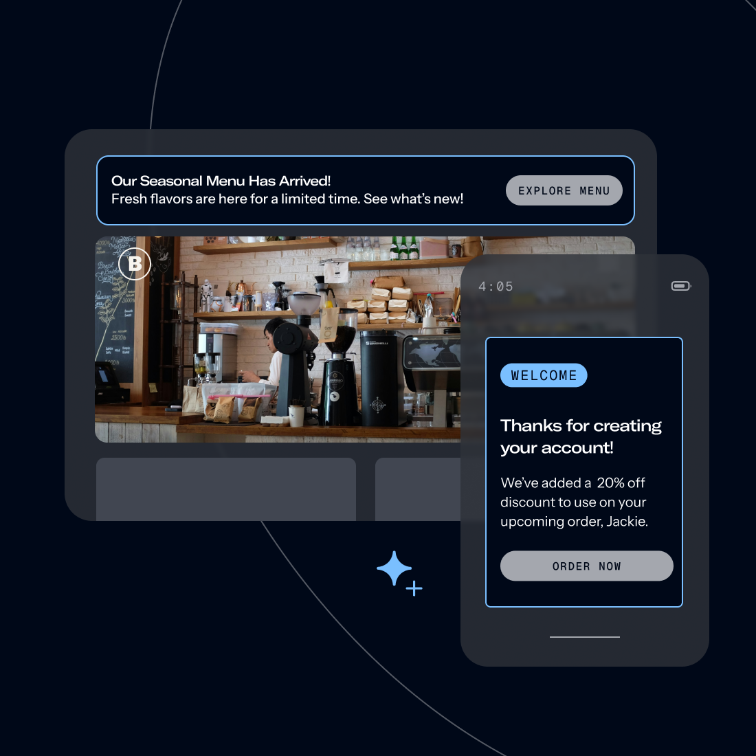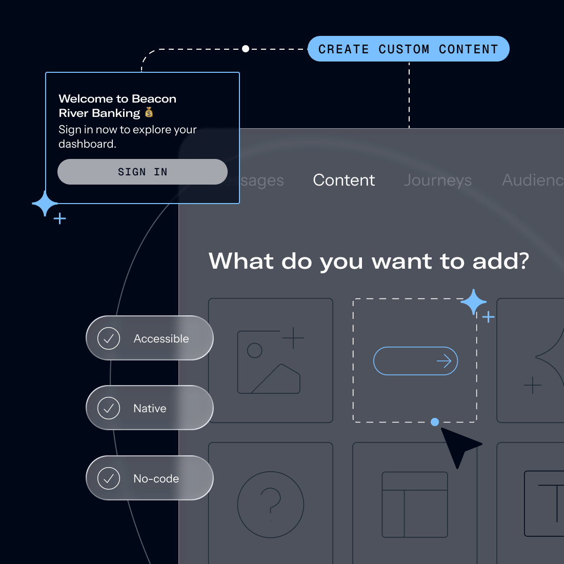 Deliver content the way your audience wants it. Use high-impact modals, full-screen overlays, slide-in banners, seamless embedded content, and more — across apps and website.