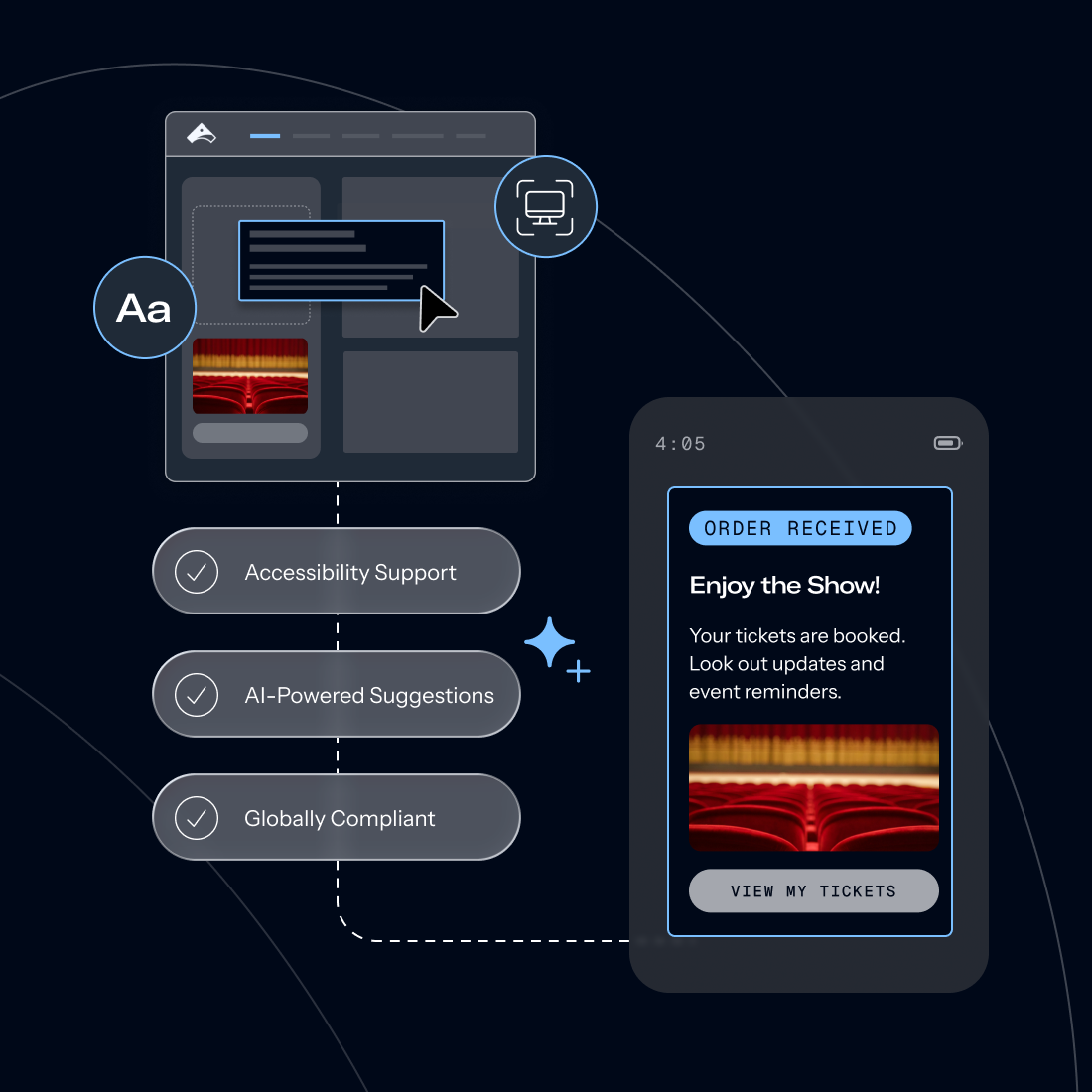 Maximize reach with native experiences, built with components designed for assistive technologies. Let Airship’s Accessibility AI Agent handle the heavy lifting by detecting potential issues early and suggesting instant, AI-powered fixes to help you meet accessibility standards.