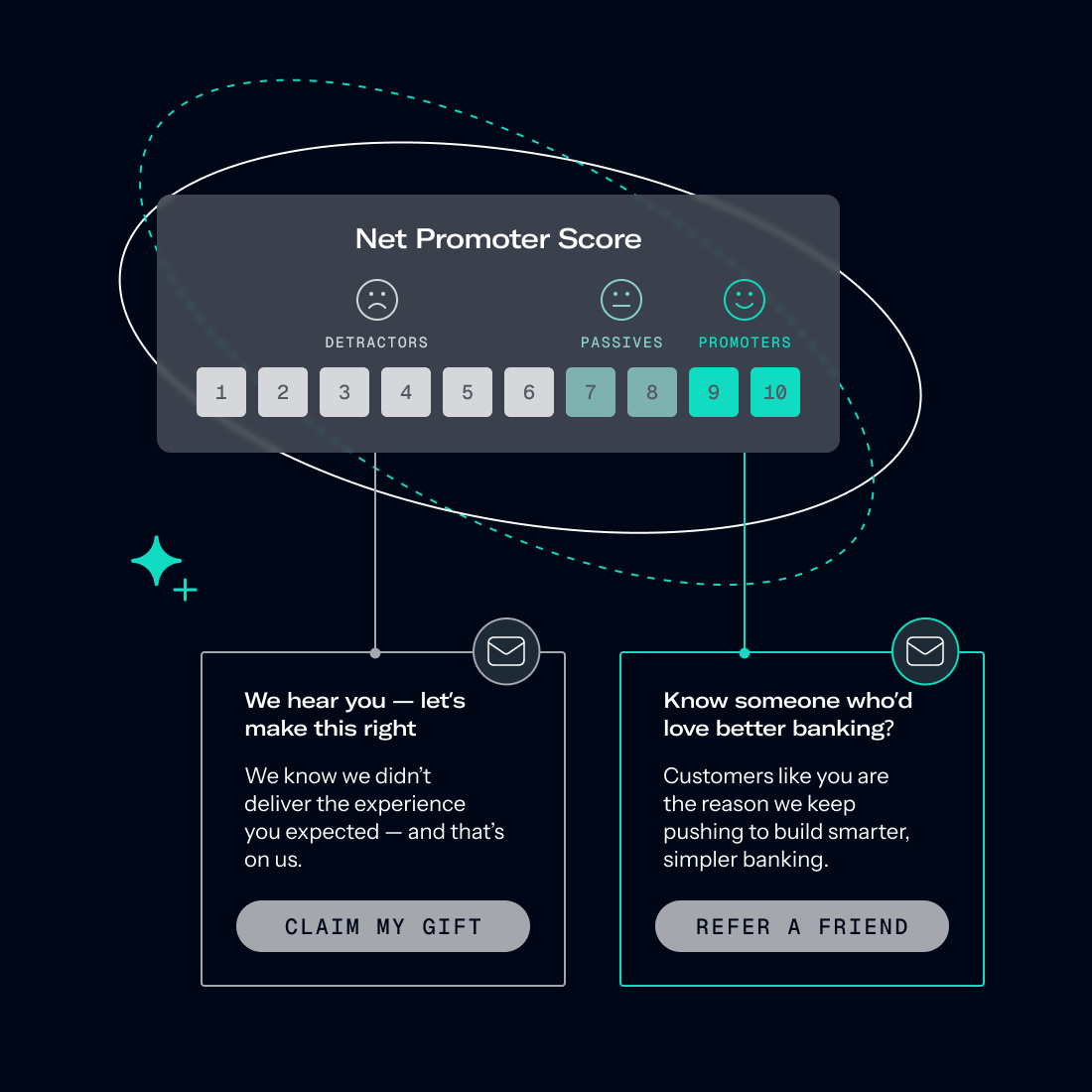 Monitor sentiment trends over time. Use NPS attributes to instantly segment detractors for targeted retention offers. Turn negative experiences into loyalty opportunities.