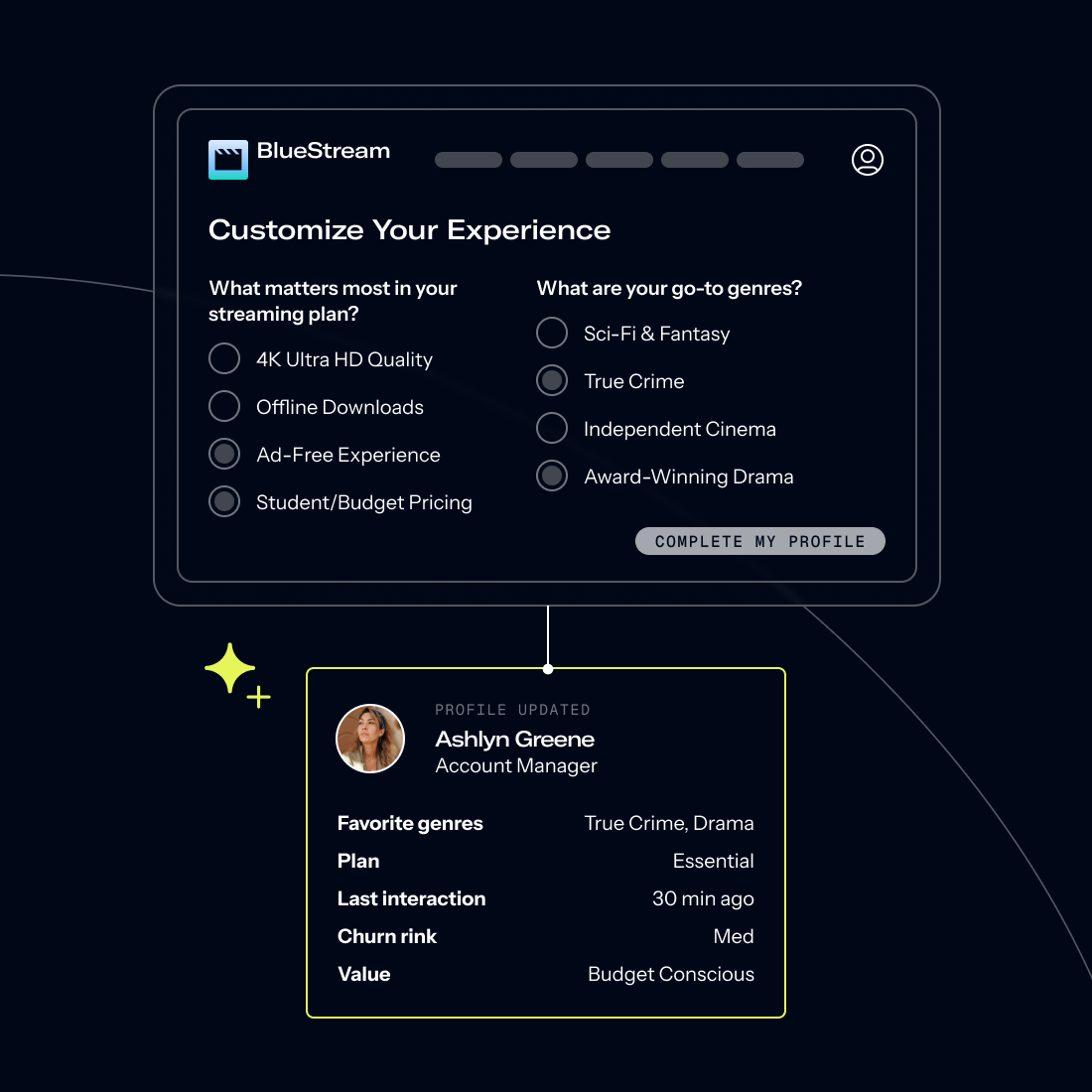 Deploy embedded, no-code forms and surveys that capture insights, automatically enrich customer profiles, and ensure a seamless site experience with zero technical debt.