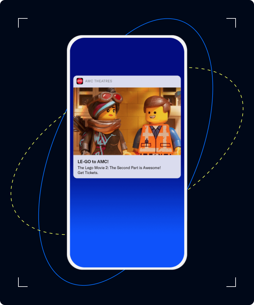 Rich notifications grab users’ attention with images and movie trailers and deep link them into the app where they can buy tickets.