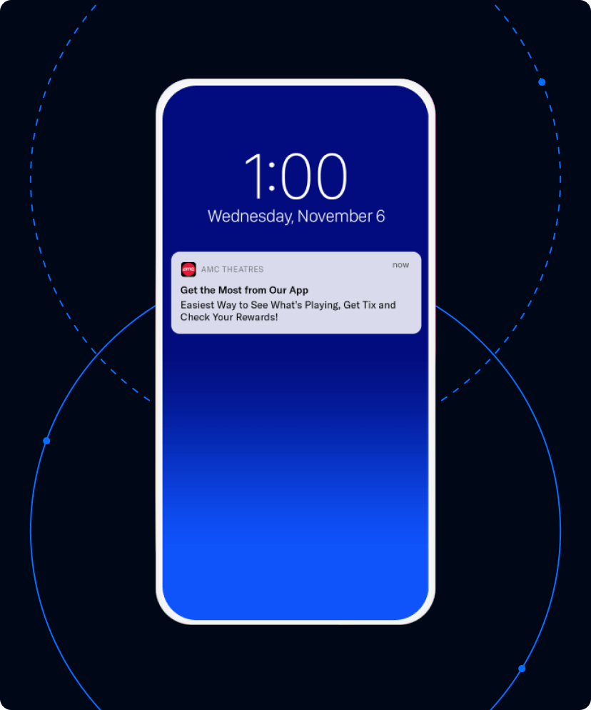 AMC keeps users engaged between theatre visits by sending timely, automated messages to reinforce the benefits of using the app.