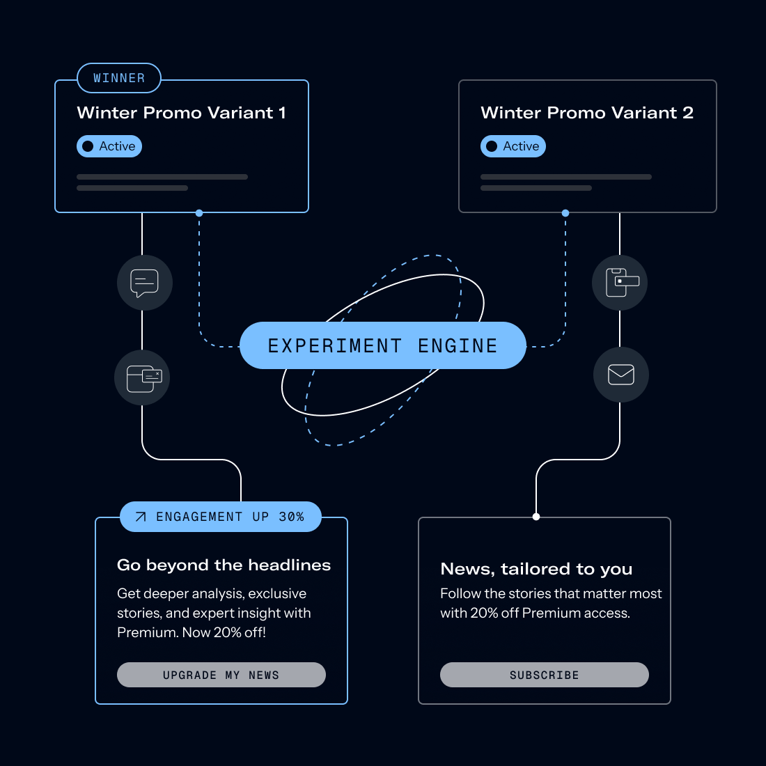 Identify at-risk audiences and use predictive triggers to deliver retention offers, reminders, and win-back journeys automatically.