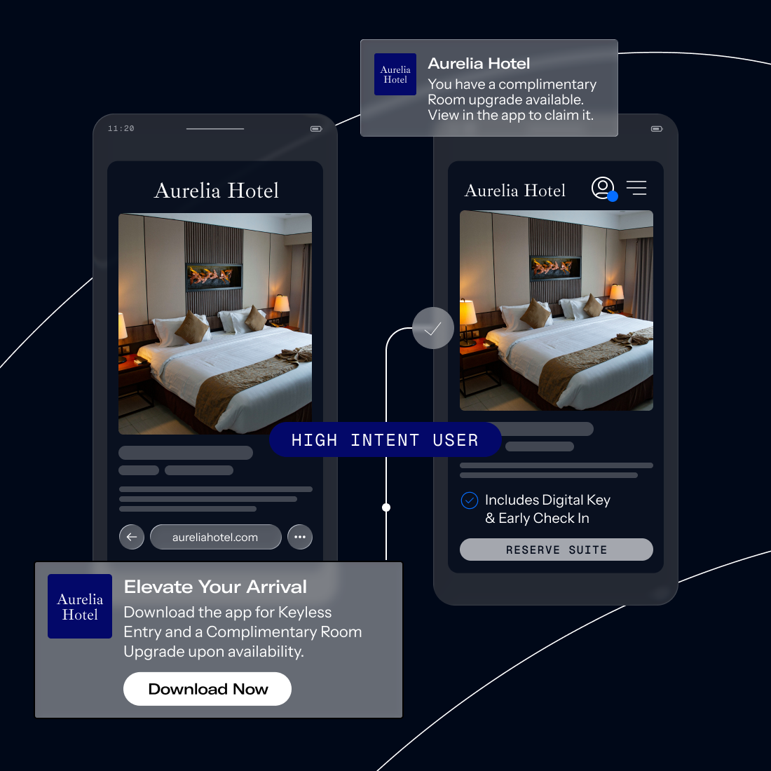 Use contextual calls-to-action and personalized incentives to drive high-value web users to install. Increase purchase rates and repeat engagement with cohesive web-to-app flows proven to lift acquisition.