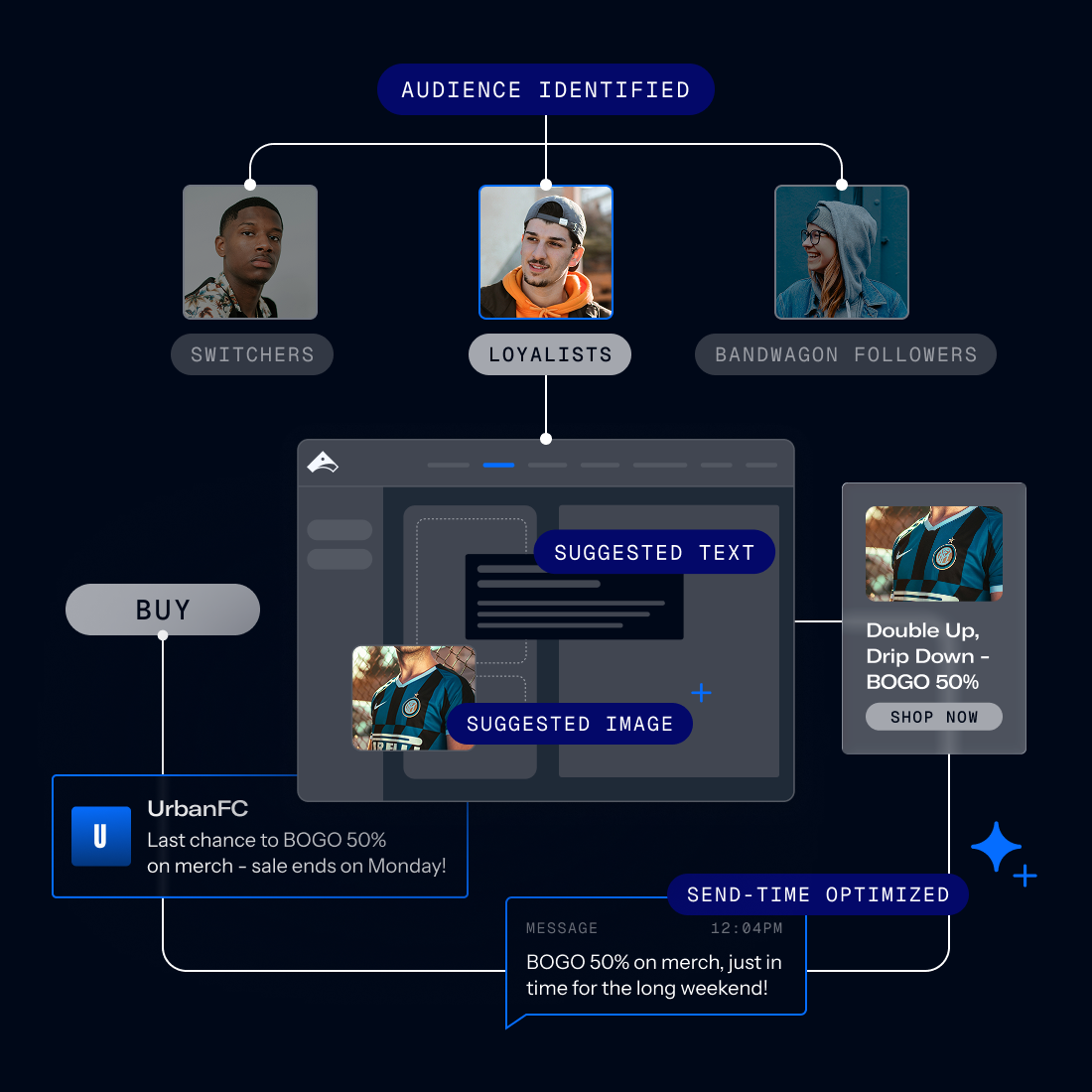 Leverage cross-channel orchestration to select the optimal channel and run experiments that optimize for your goals, based on cost, performance, or recent user behavior.