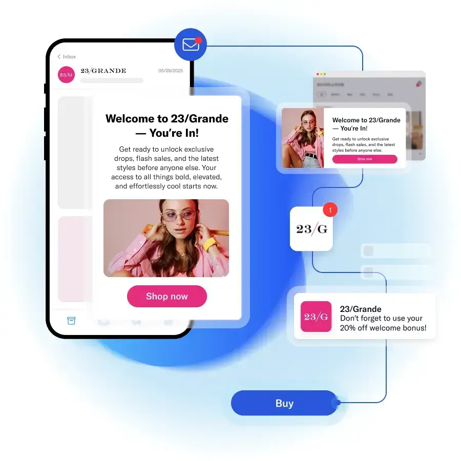 Capture emails on app and web, then follow up based on interests—automatically updating segments and preferences as you go.
