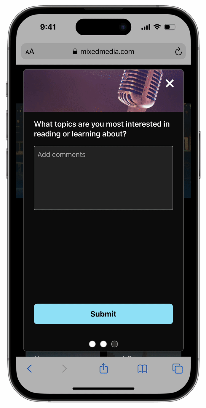 Collect emails, SMS opt-ins, and preferences through web-embedded forms, surveys, and prompts—then activate that data instantly across journeys and personalization tools.
