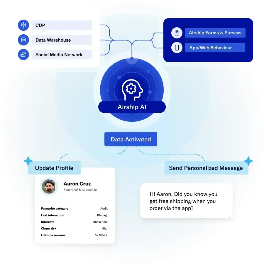 Airship turns zero- and first-party data into real-time action. Instantly collect, enrich and activate insights across channels — without shifting systems or waiting on integrations.
