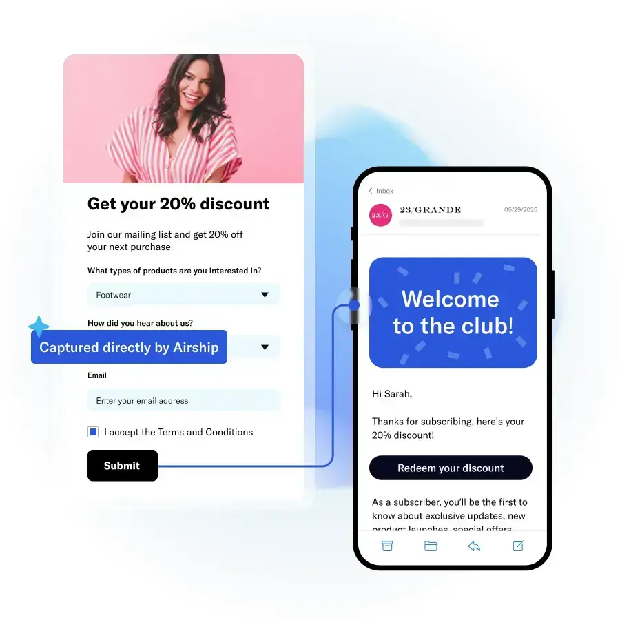 Collect consent, preferences, and intent and more directly from customers — then turn it into real-time action, without relying on back-end systems or external syncs.