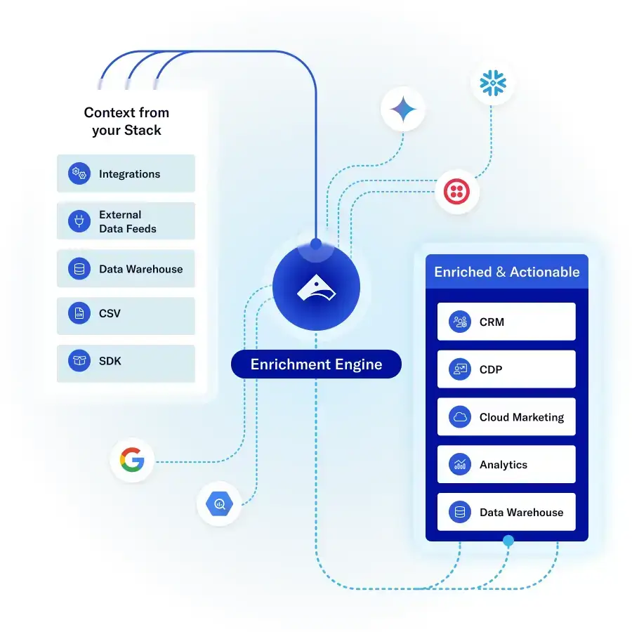 Activate real-time data from CDPs, warehouses, or zero-party source — capturing behavior instantly and powering personalized experiences, orchestration and AI refinement all in one platform.