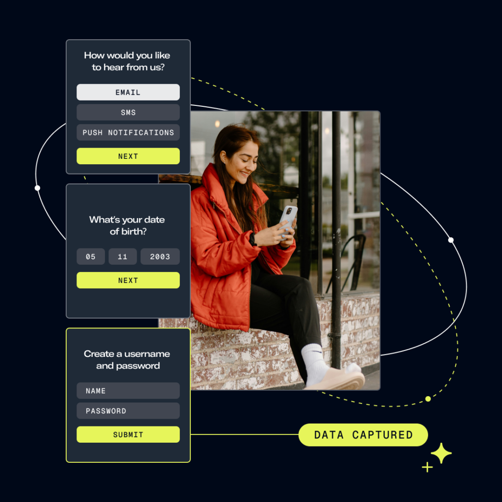 Convert anonymous visitors into known customers using native interactions across app and web. Capture email, phone, and loyalty details the moment they register, sign in, or check out. Feed downstream personalization, analytics, and experiments with reliable identity data from day one.