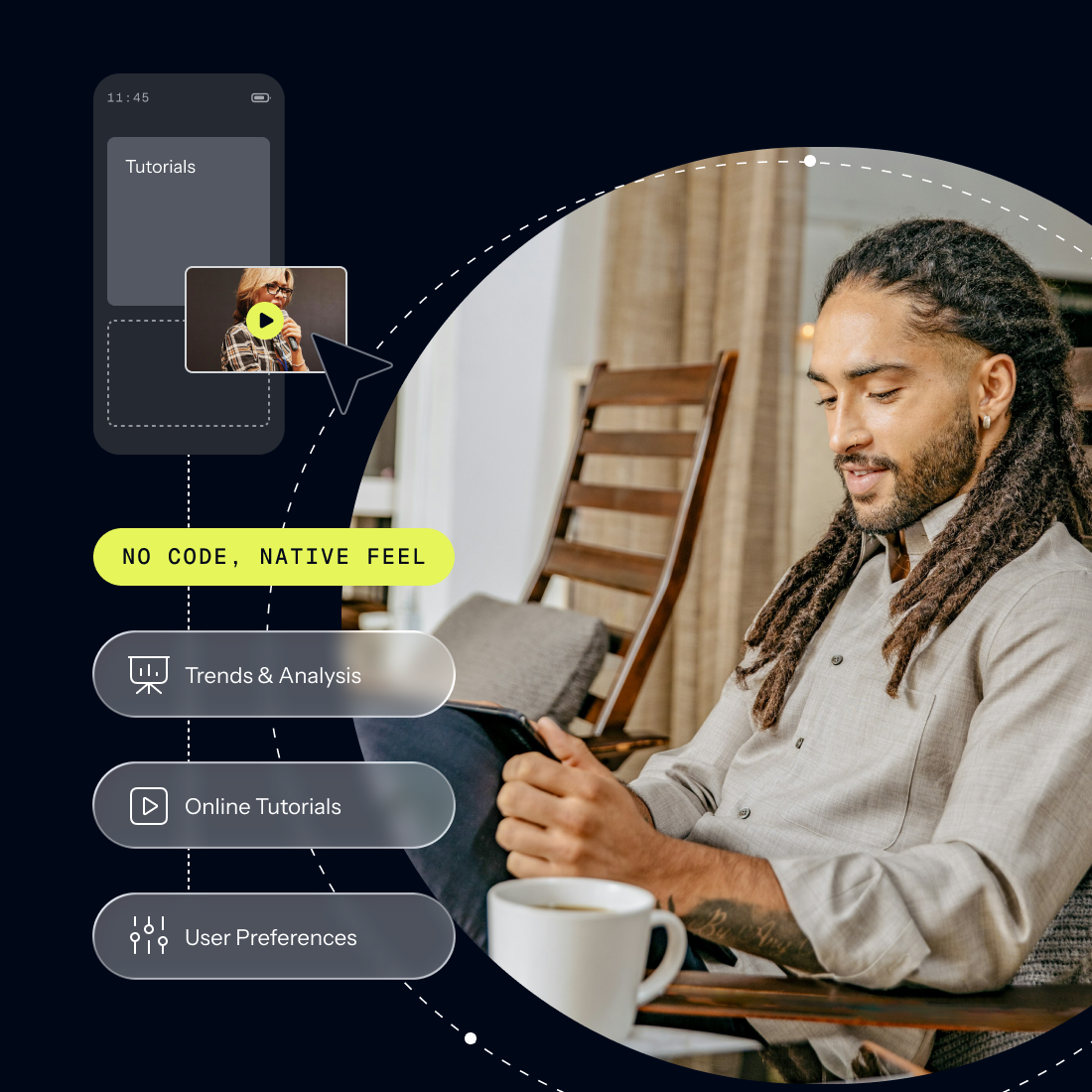 Use no-code Scenes to reveal core features and value. Combine tutorials, tips, and embedded content to educate and activate your customers.