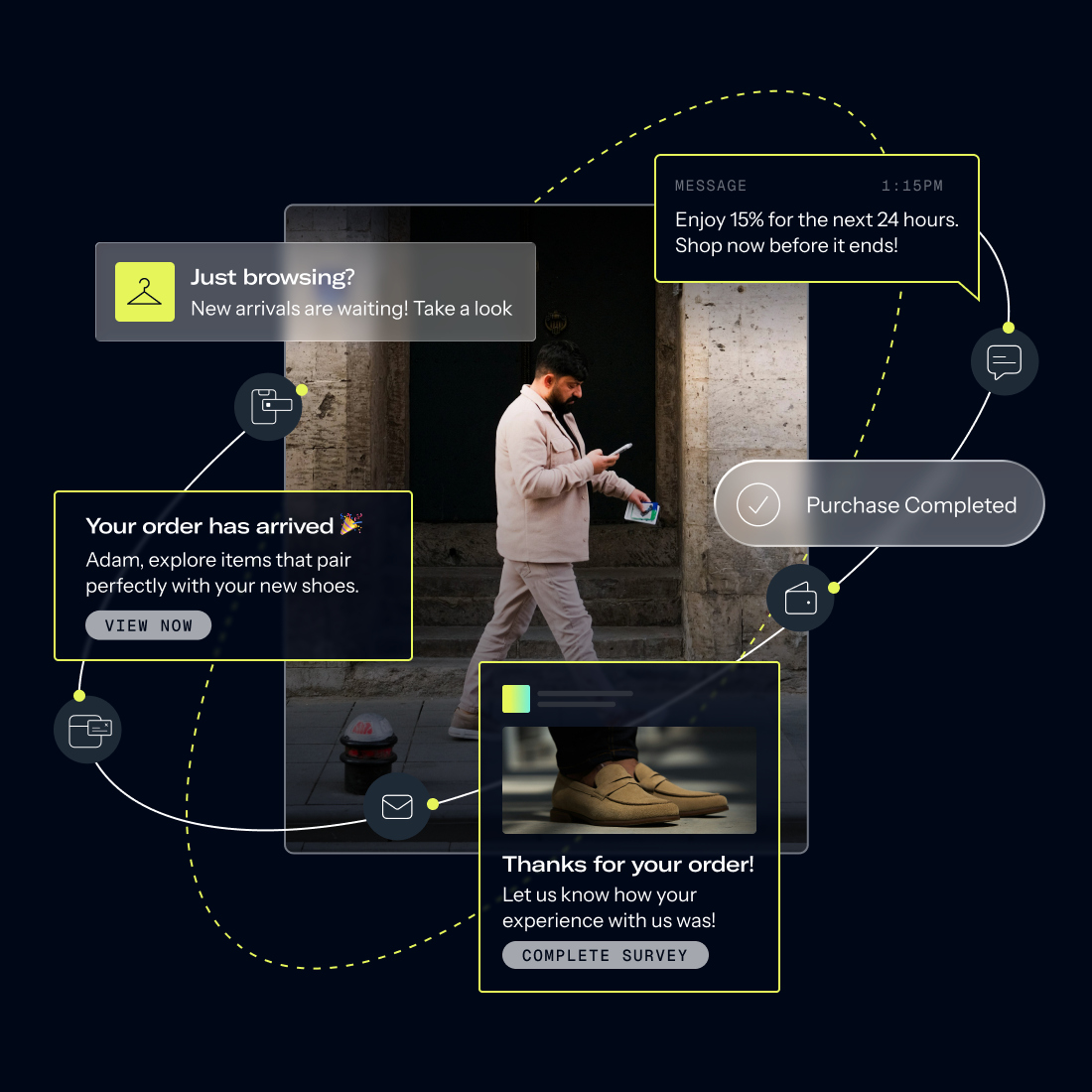 Align every offer across push, email, SMS, web, and in-app experiences for consistent customer impact. Use automated coordination to reach customers on the most effective channel at the ideal moment. Improve efficiency and revenue by creating intuitive paths from interest to purchase to recurring value.